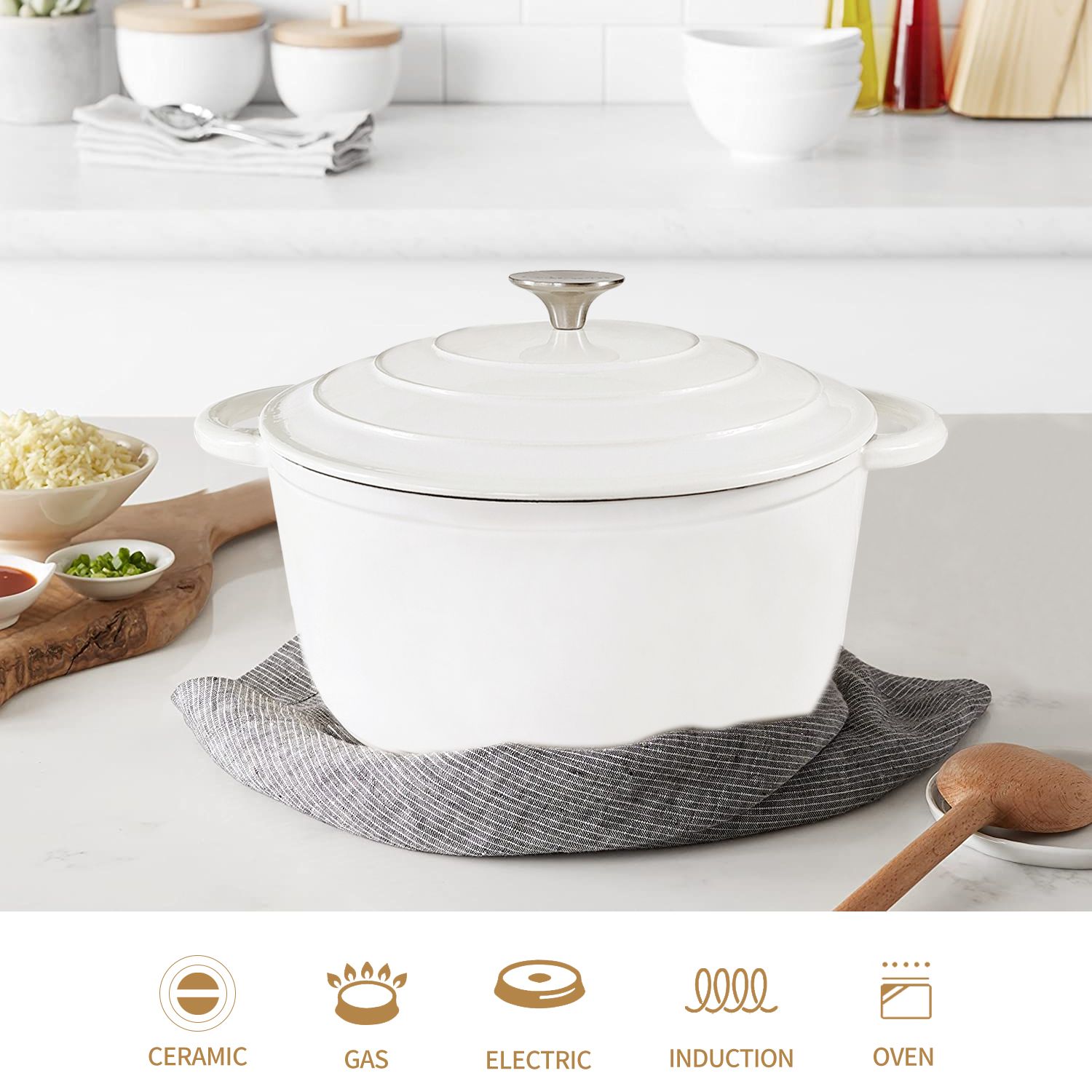 COOKWIN Enameled Cast Iron Dutch ovens are traditionally made with Enameled cast iron—which is fired twice for a durable and visually stunning finish—offers even heat distribution and superior heat retention; it's oven-safe up to 500 degrees Fahrenheit. And it is suitable for